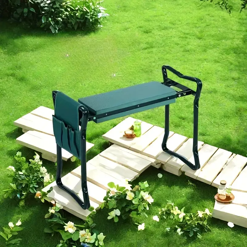 1 Stk. Verstellbarer Faltbarer Gartenstuhl mit EVA-Gepolstertem Sitz – Robuster Stahlrahmen, Tragbares Design mit Stofftragebeutel – Ideal für Gartenarbeit & Outdoor-Aktivitäten, Rasenstühle